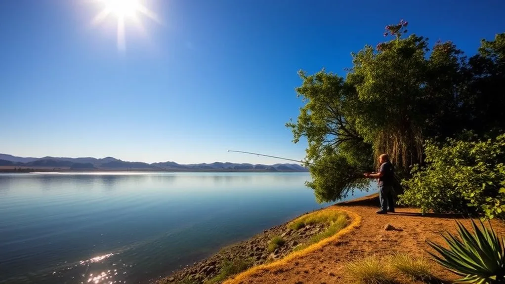 Explore the best fishing spots like The Narrows for bass and crappie, or head to the East Shore if you're after bluegill and rainbow trout. The South Bay is spring's hotspot for bass, while the West Shore shines in fall. The docks provide easy access for shore fishing and launching boats. Pack diving crawdad lures for bass and keep your technique versatile for other species. Be prepared for afternoon winds and always respect the local wildlife. The electric-motor-only policy creates a serene environment, enhancing the tranquility of your fishing outing. With plenty of facilities, including campgrounds and picnic areas, Rancho Seco Reservoir promises a delightful fishing experience. Additionally, the Amanda Blake Wildlife Refuge adds a unique aspect to the recreational area, providing protection to local flora and fauna. For those interested in a more immersive experience, consider bringing winter camping gear to fully enjoy the serene surroundings.