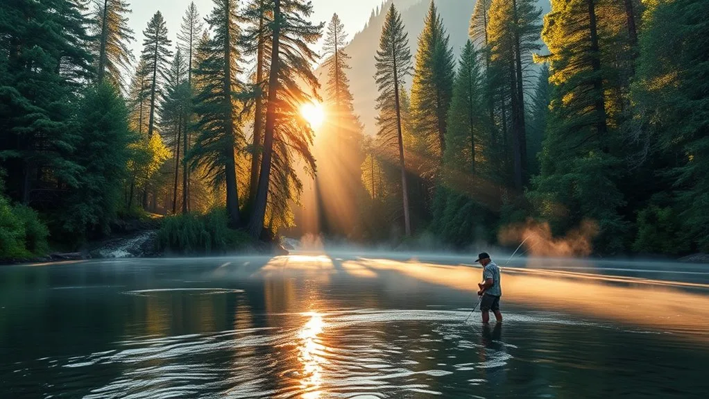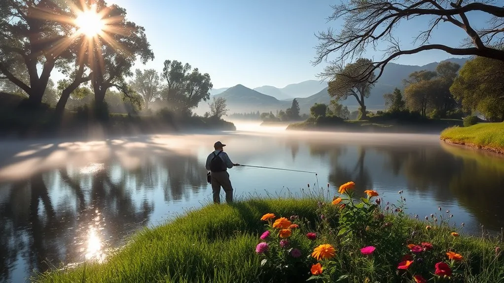 When planning your fishing trip, remember that the river is closed for fishing from October 16 through December 31 to protect the salmon runs. Adhering to the California Department of Fish & Wildlife regulations is vital, with specific gear restrictions and bag limits in place to conserve this delicate habitat. You'll encounter species like Chinook salmon, Sacramento blackfish, and even non-native fish like largemouth bass.