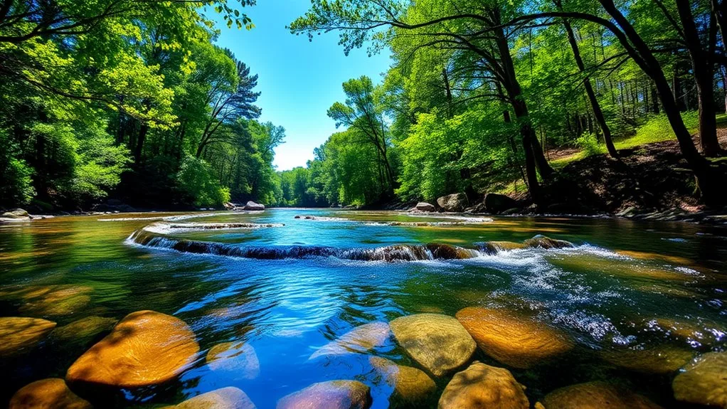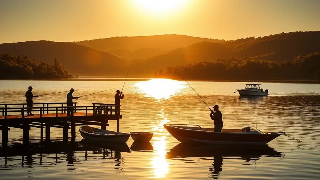 To maximize your fishing success, try trolling needlefish, Rapalas, or white plastic grubs, keeping your speed around 1 mph for grubs. If you're aiming for the giant catfish, summer is your time, with some exceeding 30 pounds. The lake's amenities enhance your experience, offering 24/7 fishing access, a dual-lane paved boat launch, and rentals of 12-foot aluminum fishing boats for half or full days.