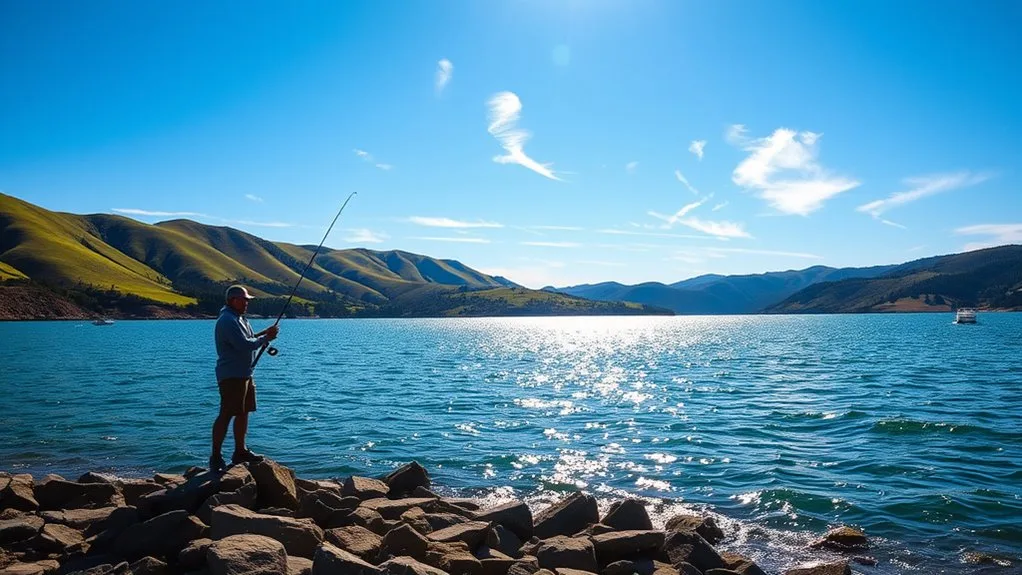 Master the waters with effective techniques. Trolling with needlefish or silver spoons attracts trout and salmon. Largemouth bass respond well to crankbaits and soft plastics, while nightcrawlers are perfect for catfish and bluegill. Rainbow trout are a popular target at Lake Berryessa, similar to those stocked annually at Blue Lake in Fairview. Remember, the east side of Lake Berryessa is not allowed for shore fishing, so plan your fishing spots accordingly. Don't forget to check current fishing regulations to guarantee a responsible and rewarding experience at this angler's paradise. Lake Berryessa is waiting to offer you an unforgettable fishing adventure!